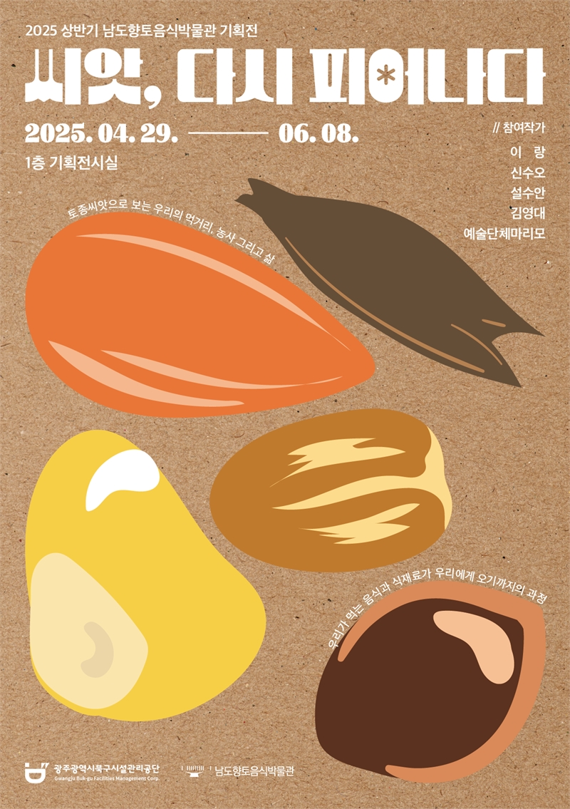 광주북구시설관리공단(이하 공단)은 토종씨앗으로 보는 우리의 먹거리, 농사 그리고 삶을 주제로 2025년 상반기 남도향토음식박물관 기획전시 ‘씨앗, 다시 피어나다’를 4월 29일부터 6월 8일까지 1층 기획전시실에서 개최한다.