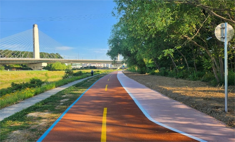낡아 훼손된 자전거도로를 새롭게 포장하고, 교행 시 불편이 없도록 폭을 확대했다.