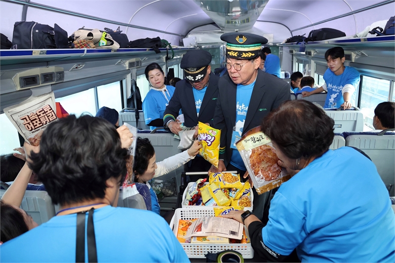 “잠시 후 등장하는 간식 카트는 여러분의 추억과 함께 달리고 있습니다. 통일로 향하는 열차에 탑승하신 것을 환영합니다” 등 유쾌한 멘트가 흘러나올 때마다 객차마다 웃음과 박수가 터져 나왔다.