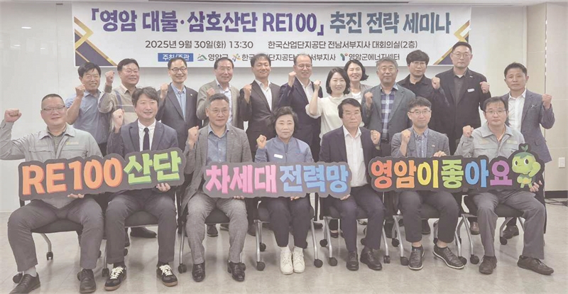 영암군(군수 우승희)이 9/30일 한국산업단지공단 전남서부지사에서 ‘대불·삼호산단 RE100 추진 전략 세미나’을 개최했다. 이번 세미나는 정부의 신·재생에너지 확대와 RE100 특별법 제정 추진 기조에 발맞추고, 무역장벽과 탄소국경세 등 국제 규제에 대응해 영암 기업과 지역사회가 에너지 자립형 산단 전환을 모색하는
