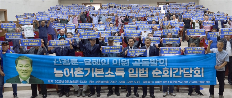 지난 26일 구례섬진아트홀에서 열린 「농어촌기본소득 입법 순회 간담회」에서 구례군민 500여 명이 참석해 농어촌기본소득 시범사업 대상지로 구례군을 선정해 달라고 한목소리로 호소했다. 군민들은 구례가 전국에서 가장 적합한 대상지임을 강조하며, 정부와 국회의 결단을 강하게 요구했다. 이날 간담회는 농어촌기본소득운동전국연합