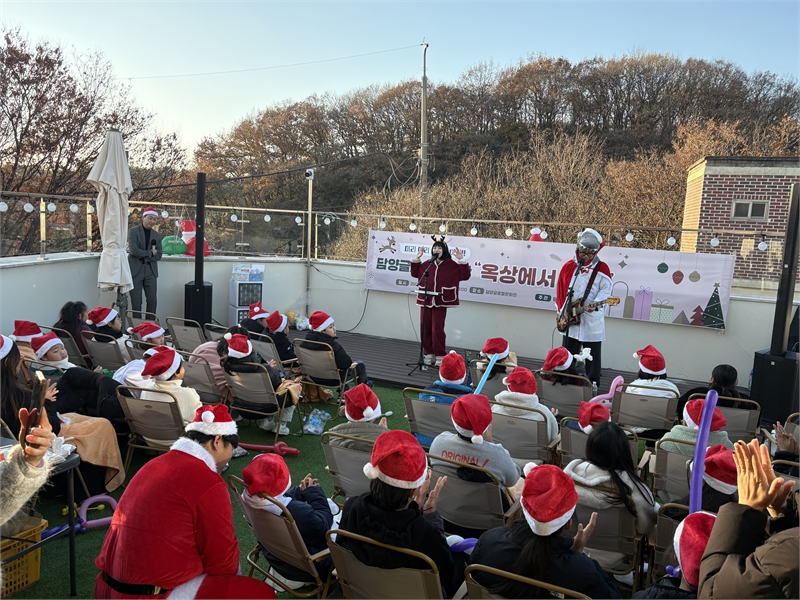 담양군(군수 정철원)은 지난 5일 담양글로벌문화관에서 관내 지역아동센터 아동 40여 명을 초청해 ‘옥상에서 놀장(미리 메리 크리스마스!!)’ 행사를 열었다. 이번 행사는 어린이들이 산타와 함께 미리 크리스마스를 즐기며 연말 분위기를 느낄 수 있도록 마련됐다. 글로벌문화관 3층 옥상 무대에서 열린 캐롤 음악회는 현장 라이