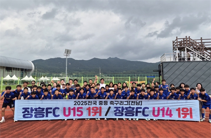 장흥FC가 3월부터 전남 벌교스포츠센터에서 열린 ‘2025 전국 중등 축구리그 전남권역 리그대회’에서 고학년부와 저학년부 1위를 모두 석권했다. 이번 대회는 교육부, 문화체육관광부, 대한축구협회가 주최하고 전라남도축구협회가 주관했다. 경기는 지난 3월 29일부터 9월 7일까지 약 5개월 동안 주말마다 진행됐다. 전남권역리