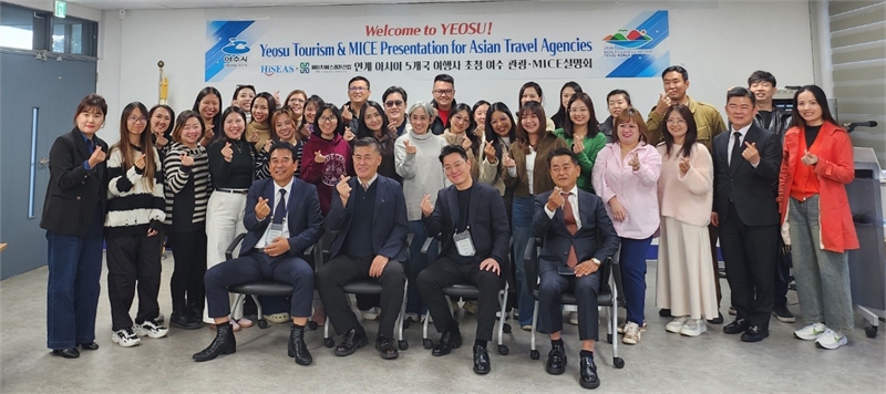 여수시(시장 정기명)는 지난 28일부터 29일까지 이틀간 아시아권 5개국 여행사 및 관광업계 관계자를 초청해 여수의 주요 관광자원을 소개하는 팸투어를 진행했다고 밝혔다. 이번 팸투어는 글로벌 여행기업 하이시스 코리아와 HS레저산업과 연계해 추진하는 행사로, 중국, 태국, 베트남, 필리핀, 인도네시아, 말레이시아 등 5개