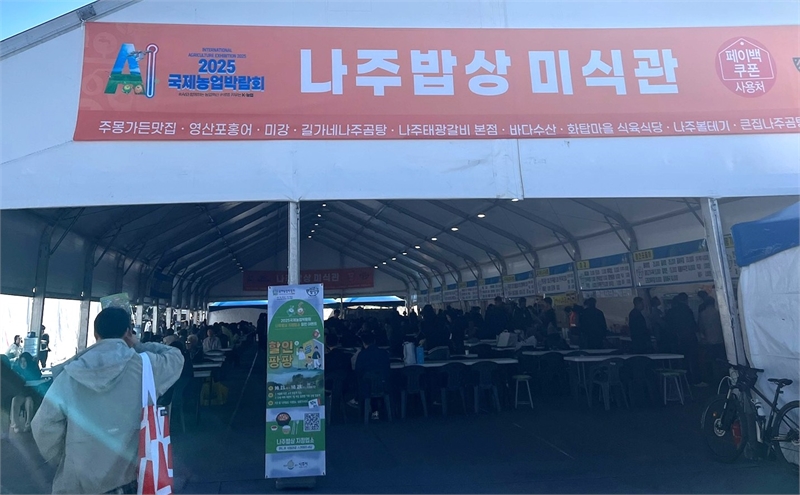 전라남도 나주시(시장 윤병태)는 지난 10월 23일부터 29일까지 전남농업기술원에서 개최된 ‘2025 국제농업박람회’에서 지역 대표 맛집이 참여한 ‘나주밥상 미식관’을 운영해 나주의 고유한 맛을 국내외 관람객에게 선보이며 큰 호응을 얻었다고 밝혔다. ‘2025 국제농업박람회’는 ‘농업이 세상을 바꾼다! AI와 함께하는