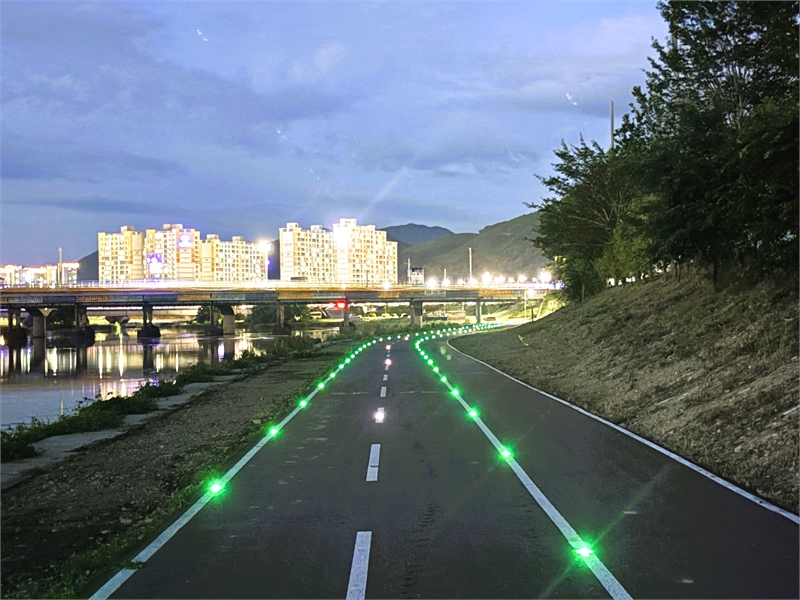 장성군이 자전거 이용자 안전 확보를 위해 황룡강변 자전거도로에 ‘활주로형 엘이디(LED) 표지병’을 설치했다. ‘활주로형 LED 표지병’은 비행기 활주로에 설치된 유도등에서 착안한 바닥 조명이다. 일정 간격을 두고 부착되어 야간 운행 시 시야 확보에 용이하다. 특히 곡선 구간, 교차로, 보행자 접점 구간에서 사고를 예