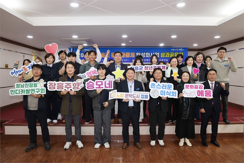 장흥군은 4일 군민회관 소회의실에서‘2025년 청년공동체 성과공유회’를 개최했다.이번 성과공유회에서는 청년공동체 5개팀과 청년발전협의체 위원 등 30여명이 참여하여 공동체별 성과공유 및 소통의 시간을 가졌다. ‘전남형 청년공동체 활성화사업’은 청년들의 열정과 아이디어로 지역사회에 활력을 도모하는 공동체 활동을 지원하는