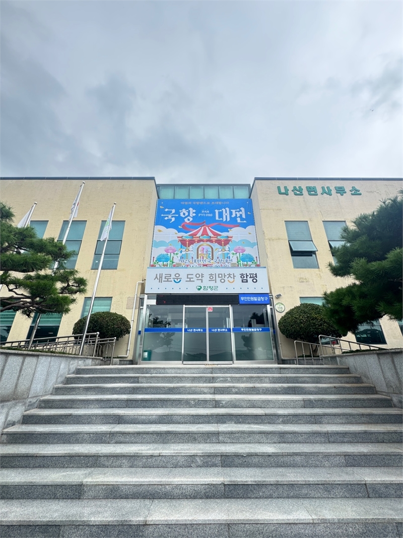 전남 함평군(군수) 나산면이 오는 2025 대한민국 국향대전의 성공적인 개최를 위해 본격적인 홍보 활동에 나섰다.함평군 나산면은 지난 24일 청사 외벽에 대형 홍보 현수막을 설치해 면민과 방문객들에게 국향대전을 널리 알리며 축제 분위기를 조성했다. 또 주요 도로변과 마을회관, 공공시설 등에도 현수막과 현판을 게시해 지역