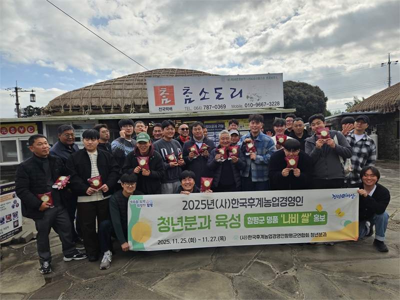 전남 함평군(군수 이상익)이 미래 농업을 이끌어갈 청년농업인의 역량 강화를 위해 선진지 교육을 적극 지원하고 있다. 함평군은 2일 “함평군 청년농업인 30여 명이 지난달 25일부터 27일까지 지역농업 경쟁력 강화를 목표로 제주특별자치도에서 선진지 견학을 진행했다”고 밝혔다. 이번 견학에는 (사)한국후계농업경영인 함평